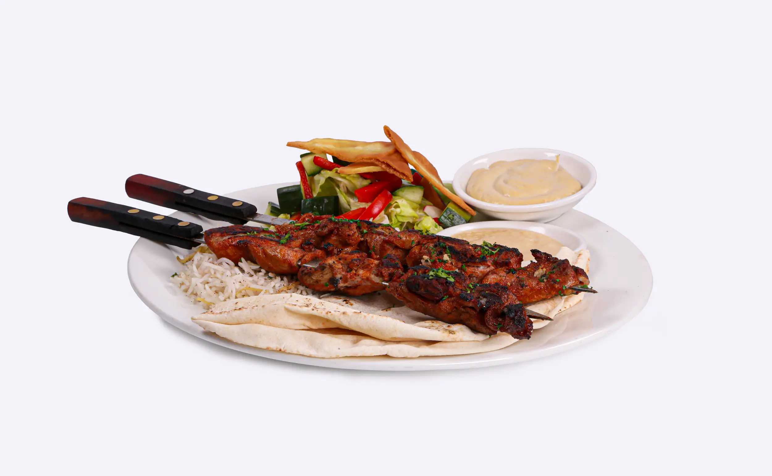 Served with rice, Fattoush, hummus, garlic sauce and Lebanese bread