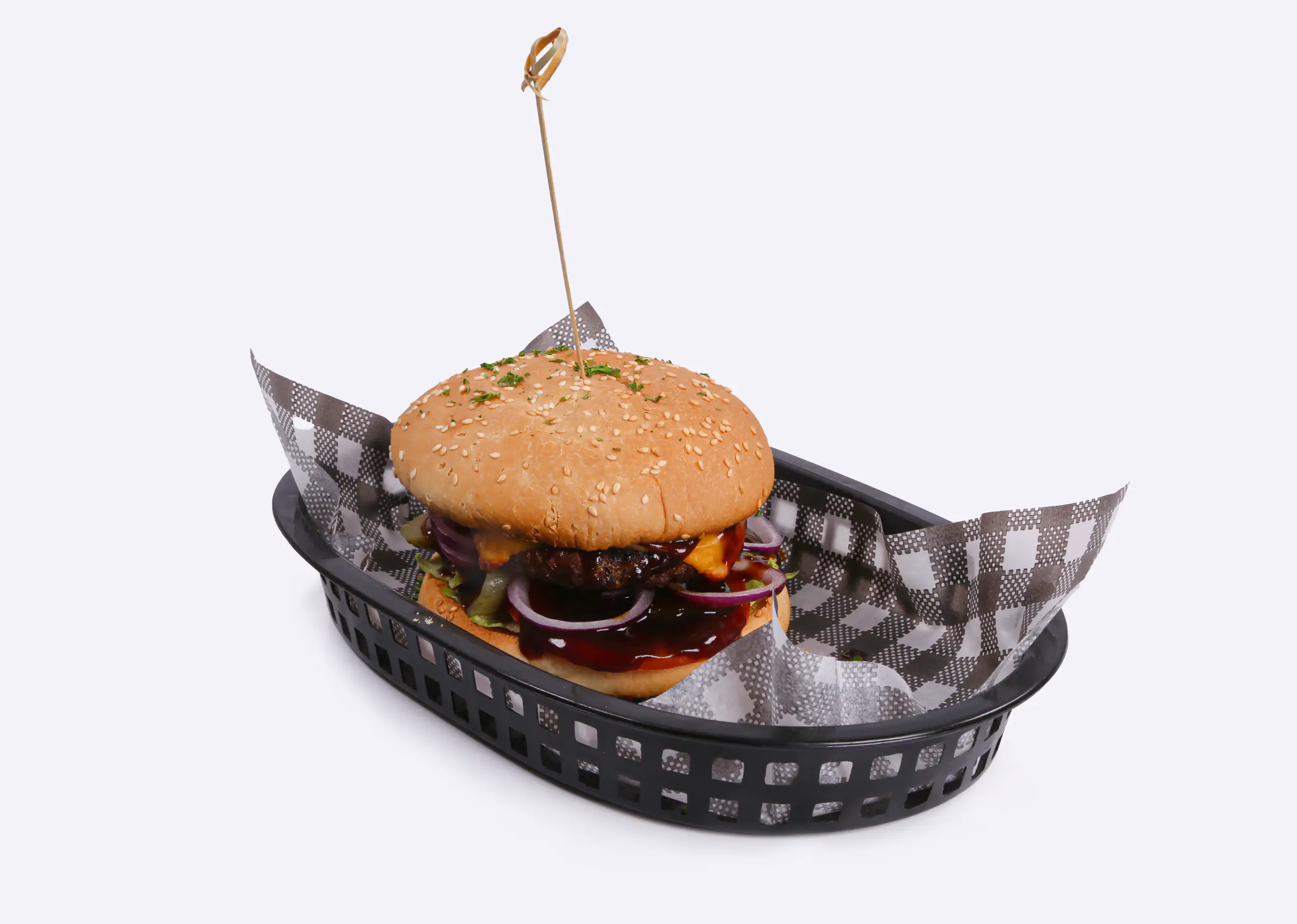 Chargrilled Angus beef patty, cheese, lettuce, tomato, red onion, pickles, BBQ sauce