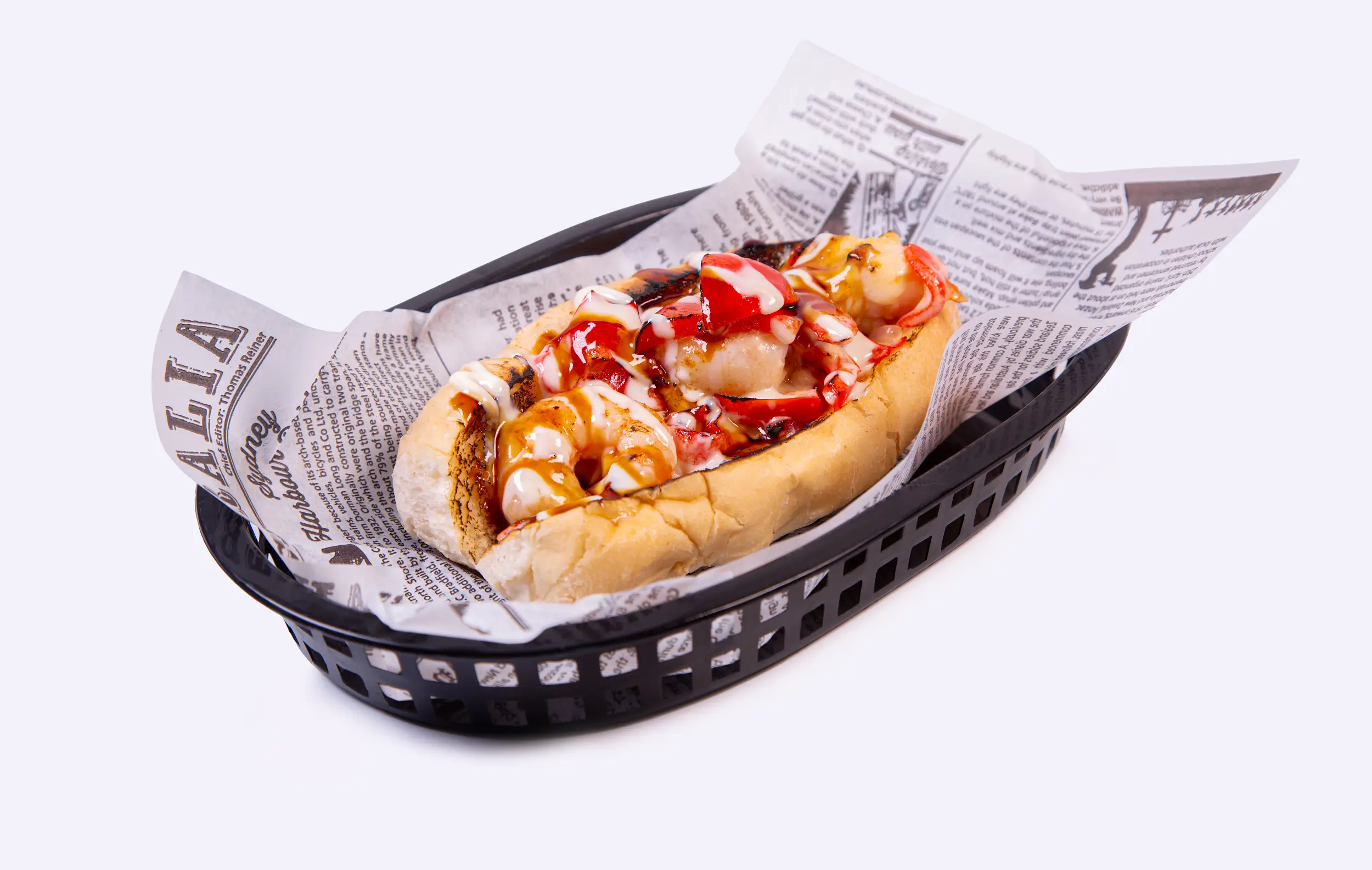 Lobster and Prawn is dressed in Japanese Mayo and Teriyaki Sauce, then seared with our special flame torch