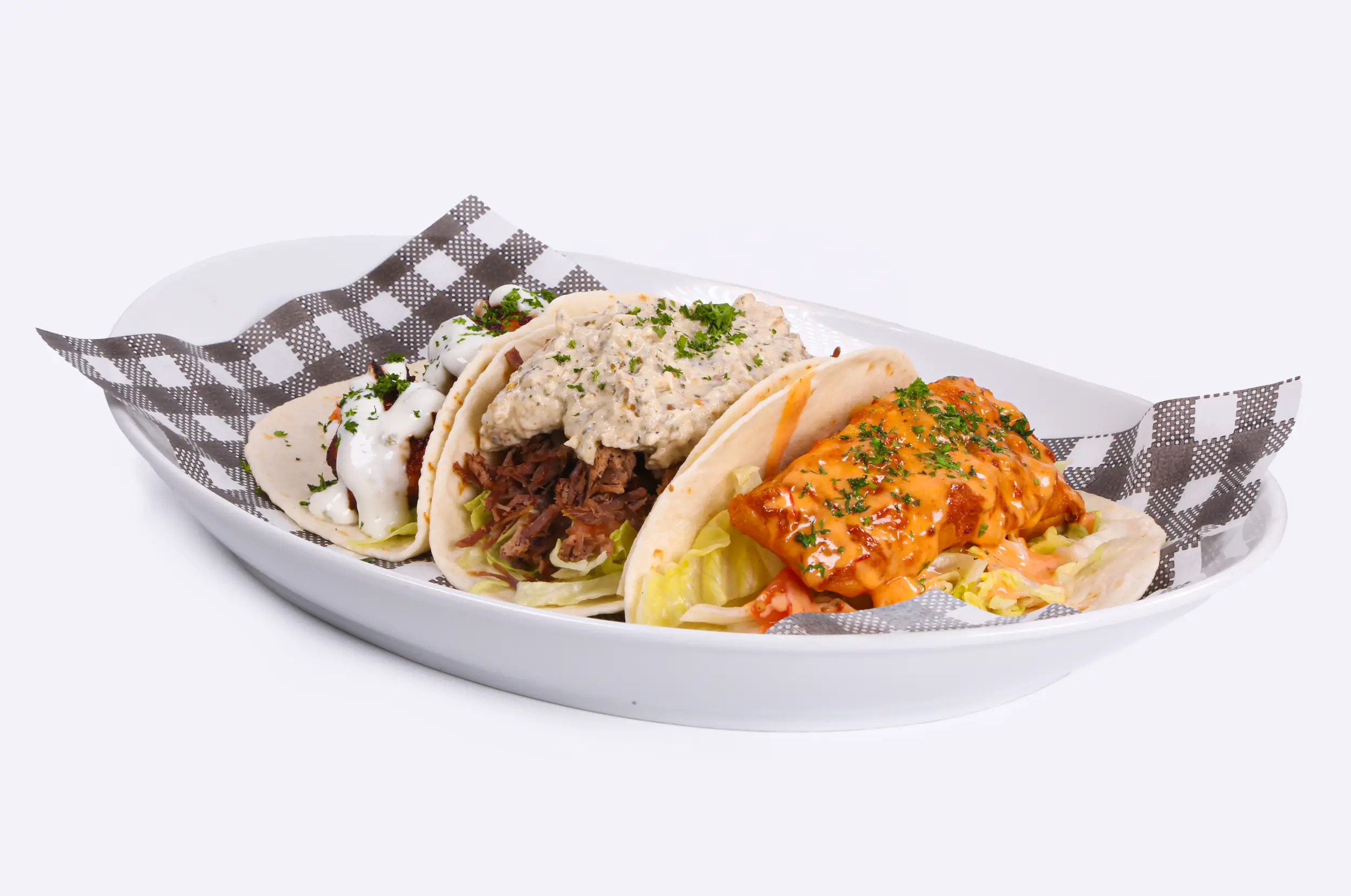 • Pulled Beef Taco, Salad & Baba Ganouj